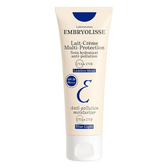 De Embryolisse Lait-Crème Multi-Protection SPF 20 UVA-UVB is een hydraterende crème met SPF 20 die beschermt tegen blauw licht, anti-pollutie en UVA-UVB. Deze zonnebrand is onderdeel van de populaire Lait-Crème Collectie van Embryolisse en geeft een onzichtbare bescherming op de huid, zonder witte strepen achter te laten. Daarnaast houdt de Multi-Protection SPF 20 de hydratatie optimaal voor een complete huidverzorging in één enkele stap.